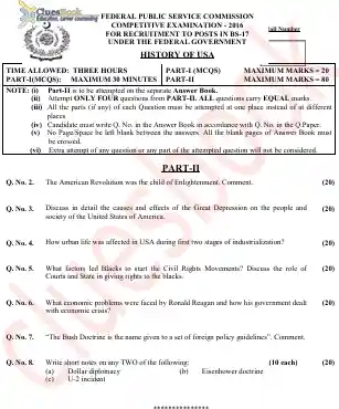 You can download the original CSS History of USA Past Paper 2016 (PDF) from the link below. It is unsolved and formatted for preparation practice .The 2016 History of USA CSS paper blended classic historical issues with modern policy challenges.