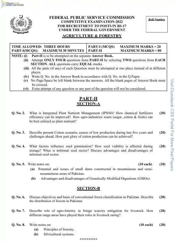 Preparing for the CSS examination requires not just hard work but also smart preparation. One of the most effective ways to strengthen your preparation is by practicing past papers. To help aspirants, I am providing the CSS past paper Agriculture and Forestry 2022 PDF for free download.