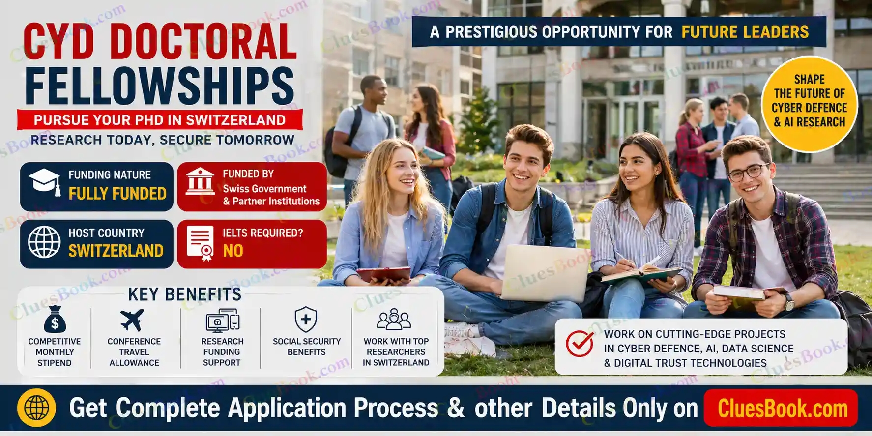 The CYD Fellowships for PhD 2026 offer more than funding. They provide a direct pathway into high-impact careers in cybersecurity, AI and data science. With a fully funded salary, dedicated research funding and collaboration with Switzerland’s leading institutions, this program positions you at the forefront of innovation. If you want to study in Europe without IELTS, gain global exposure and build a powerful research career, start preparing now and apply before the deadline to secure your place in this prestigious program.