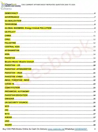 You can download the CSS Current Affairs: Most Repeated Topics 2000 to till date by Agha Zuhaib Khan from our website. It’s presented in a convenient PDF format for quick access and practice use. In competitive exams like CSS, the smartest candidates don’t just work hard, they work strategically. This book is more than a compilation; it’s a roadmap to high-impact preparation.