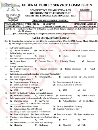 European History Past Papers CSS 2013 – Practical Preparation Advice