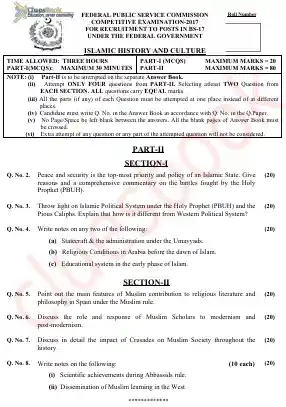 You can download the original CSS 2017 Islamic History and Culture paper from the link below. It is unsolved and formatted for exam-style preparation.