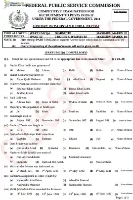 Overview of the CSS Past Papers History of Pakistan And India 2011
