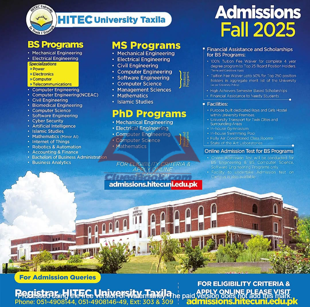 Fall 2025 HITEC University Admissions Open for BS, MS & PhD programs. Apply online, and check eligibility & scholarship details today!