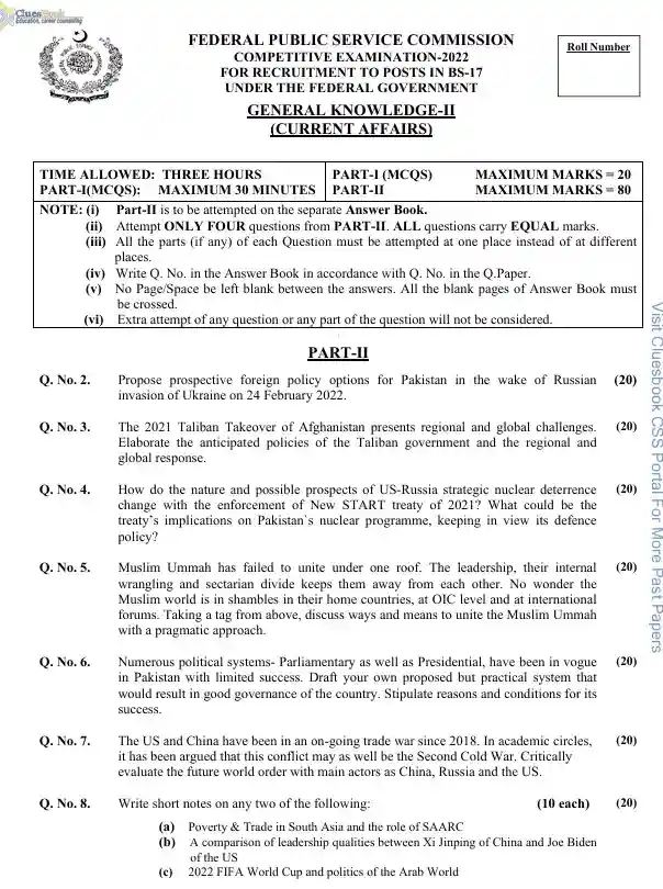 Download Current Affairs CSS Past Papers 2022. Includes questions on the Ukraine war, Taliban takeover, US-China
