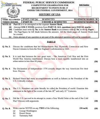 The History of USA CSS Paper 2014 emphasized both political and socio-economic aspects of American history. Major areas included:
