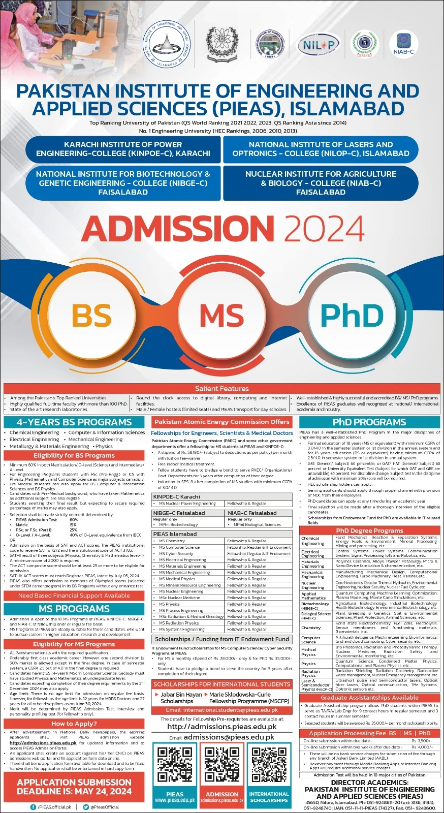 Deadline For (PIEAS) University Pakistan Admission 2024: