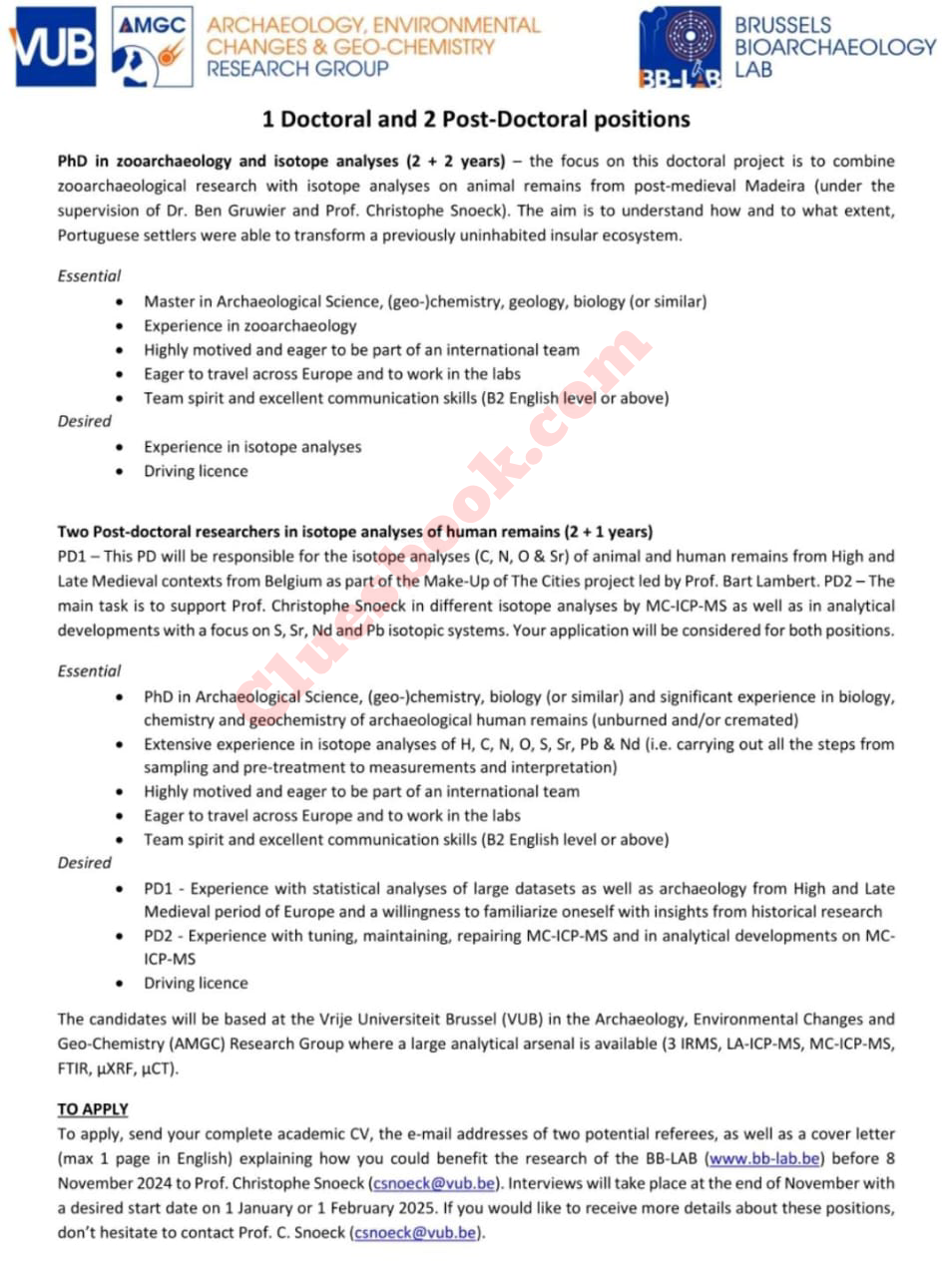 Hashtags: #Zooarchaeology, #IsotopeAnalysis, #PhDPositions, #PostDocPositions, #Bioarchaeology, #ArchaeologicalScience, #VUB, #VrijeUniversiteitBrussel, #ResearchOpportunities, #AcademicJobs