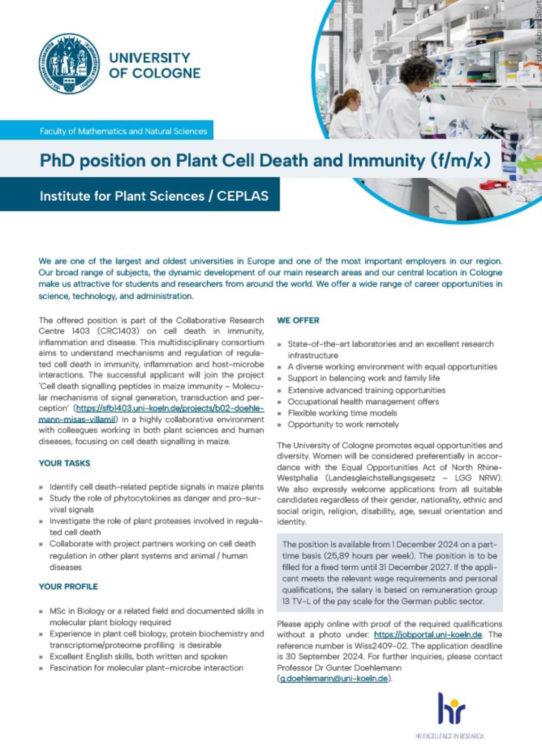 PhD Position in Plant Cell Death and Immunity at the University of Cologne